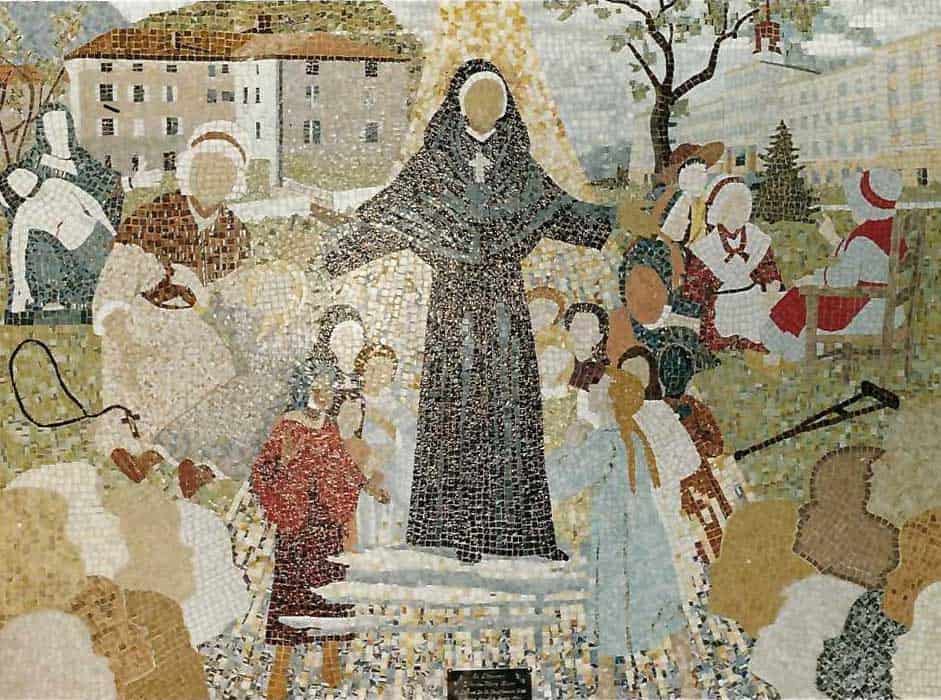 Her love of Jesus began at an early age. At 16 months a fall stunted her growth. Her mother brought her to the Chapel of the Penitents where she sat for many hours in front of the Pieta, fervently praying for a cure. While contemplating this woman holding her dead son in her arms, she often meditated on the scenes of his passion. During this time, she was inspired by the Holy Spirit to bring children to love God, especially those who were poor. After four years of insistent prayer, her desire was answered, and she was healed by the Virgin Mother Mary.