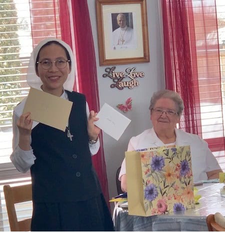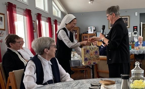 Sister Shellane Dala took the opportunity to thank all the Sisters for their prayers and for their family spirit and fraternity that they share. She really felt part of the community even if she comes from the Philippines. After spending a year at Mary’s house in Saskatoon, she is now returning home. ‘Thank You Sister Shellane’.
