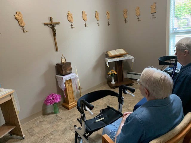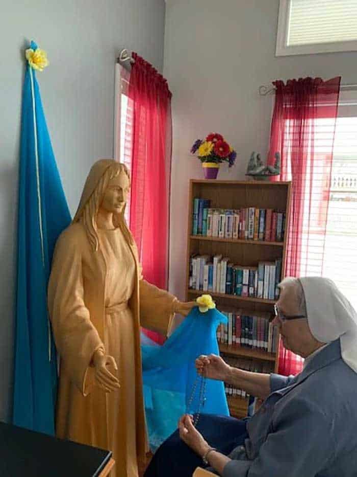 The service of adoration and prayer is a great gift to our religious congregation, the Church and our world. Our elderly sisters in our infirmaries around the world pray as they offer themselves in their illness & limitations. The Liturgy of the Hours, the Rosary, the Eucharist, daily contemplation of the Word of God and Eucharistic adoration are offered by our sisters for the needs of the world. They are often solicited to bring to the Lord intentions from many people in need. Each sister in our infirmary is a ‘Moses’ with hands and hearts raised to God in constant prayer for the needs of our religious congregation, the Church & our world.